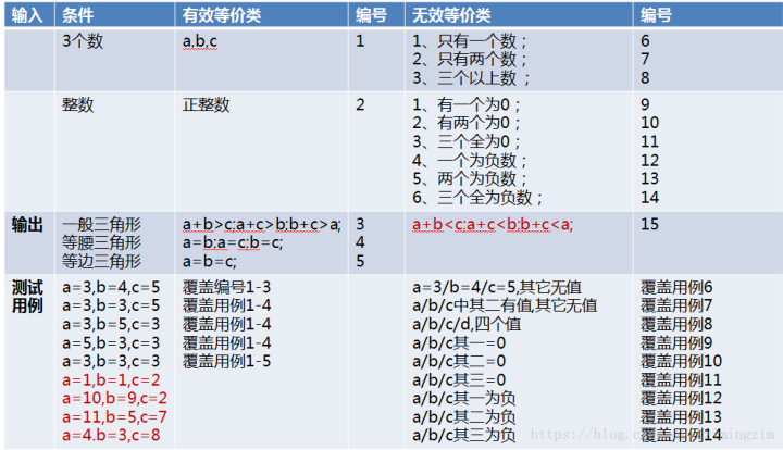 3、设计一个测试用例,使其覆盖一个或多个有效的等价类; 4、设计一个或更多的测试用例以覆盖剩余的有效等价类; 使用场景:输入条件(取值范围/值个数;必须值集合;布尔值;一组处理值;必须遵守的规则;再细分更小等价类;) 等价类举例: 以三角形测试为例:输入3个整数做为三角形的三个边,通过程序判定三角形的类型。