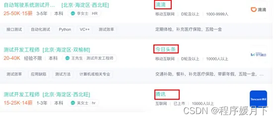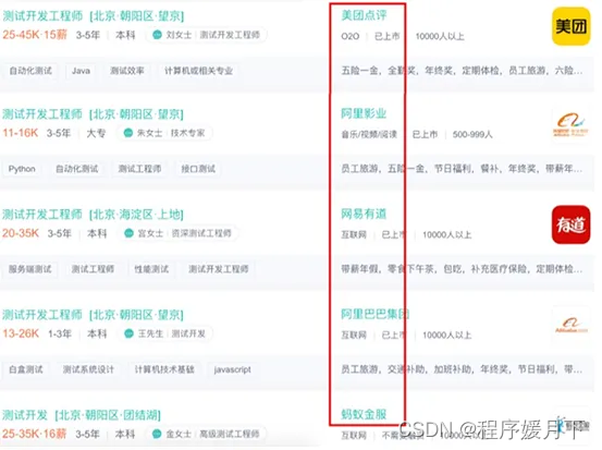 总结:需求量大,薪资高,而且名企招聘,可见测试开发现在有多火。