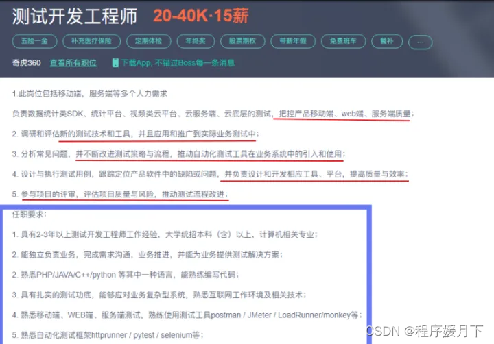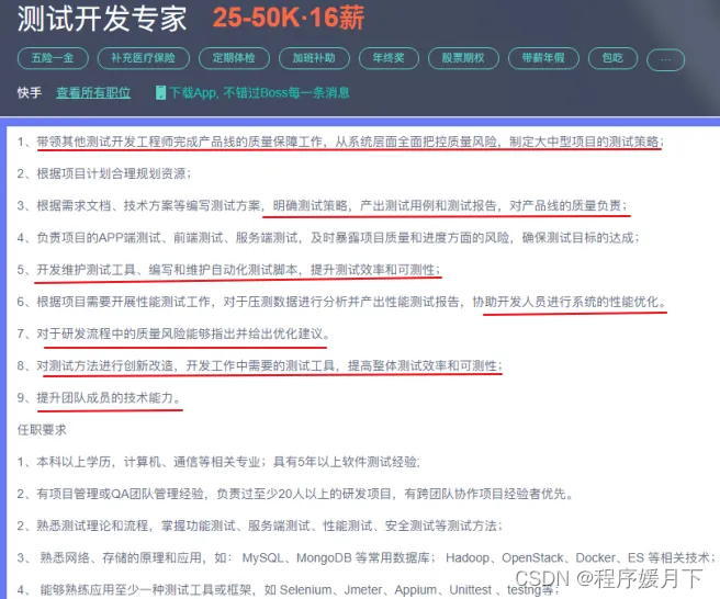 测试开发是不是能刚好解决企业当前的痛点呢?我们看下招聘网站对测试开发的岗位要求(如下图所示):