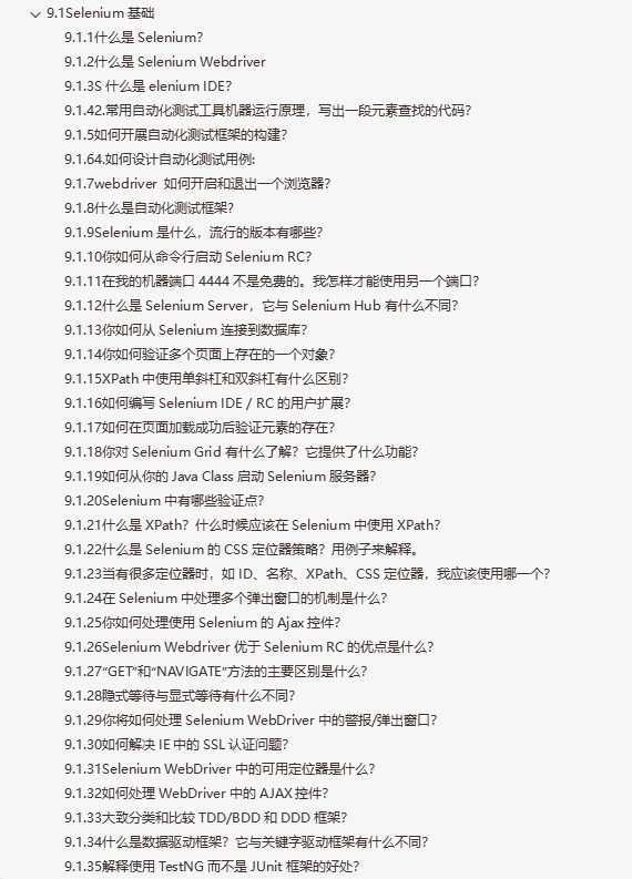 内容涉及:测试理论、Linux基础、MySQL基础、Web测试、接口测试、App测试、管理工具、Python基础、Selenium相关、性能测试、LordRunner相关等