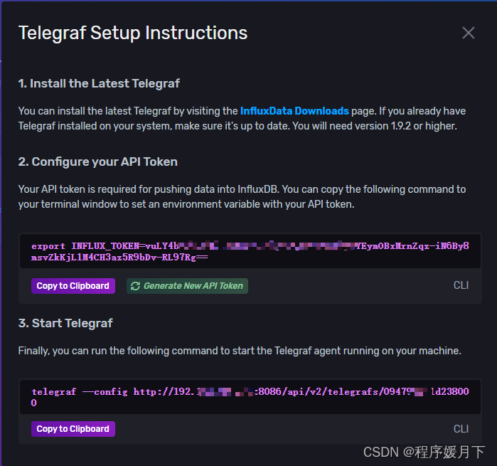 - 然后,再拷贝telegraf这一句,到想要被监控的机器上执行一下