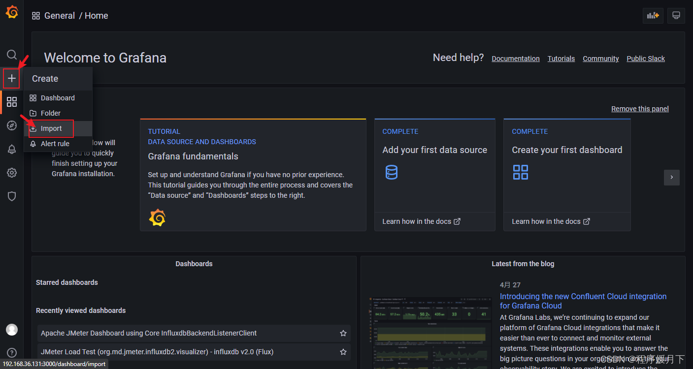 - 浏览器访问http://grafana_ip:3000 admin/admin