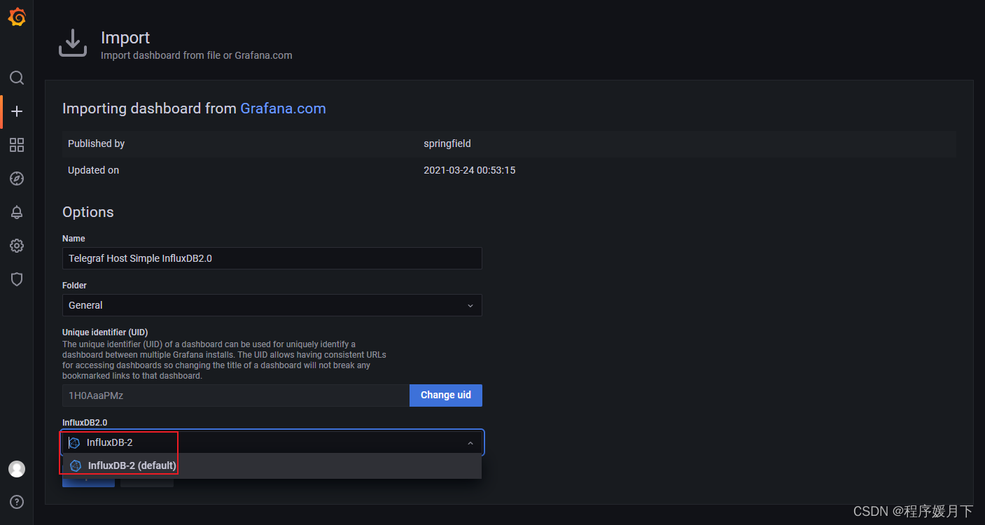 - 首先,也是安装好grafana和配置influxdb2数据源