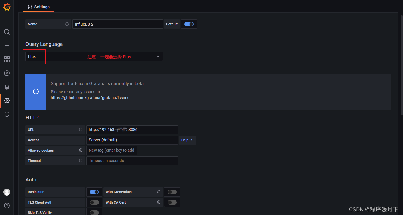 注意: 因为要使用influxdb2,所以,grafana版本请使用新版本,不要使用老的低版本,低版本不支持influxdb2.
