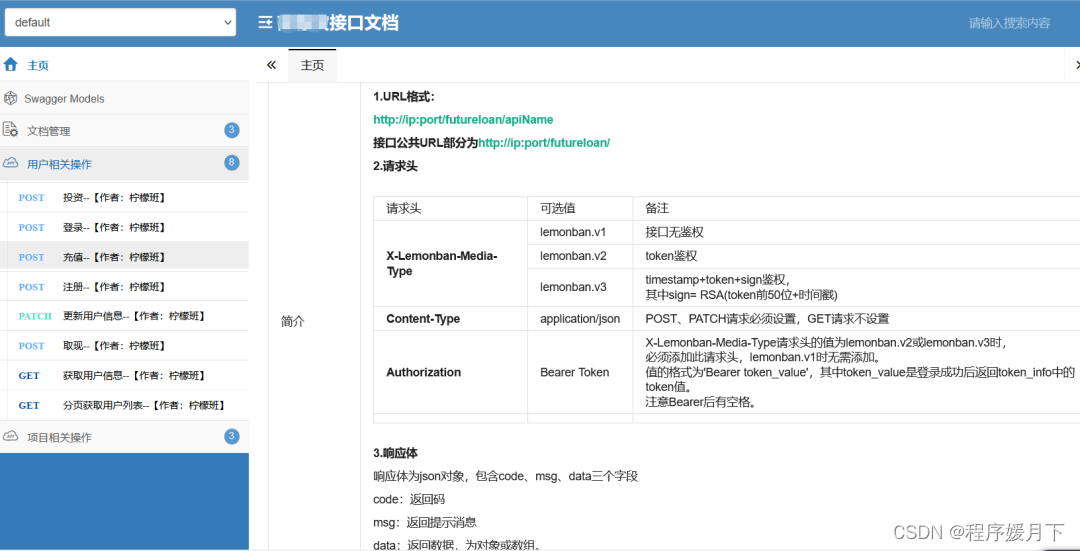 接口文档中描述的响应内容,与接口测试的实际结果做比较,可以判断当前接口是否通过。响应内容包含:响应码-http状态码、响应头、响应体。