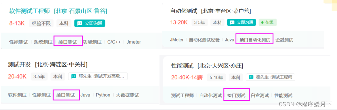 因此在软件测试招聘岗位的要求中,无论是功能测试、自动化测试、性能测试亦或测试开发岗位,接口测试都是必须掌握的!