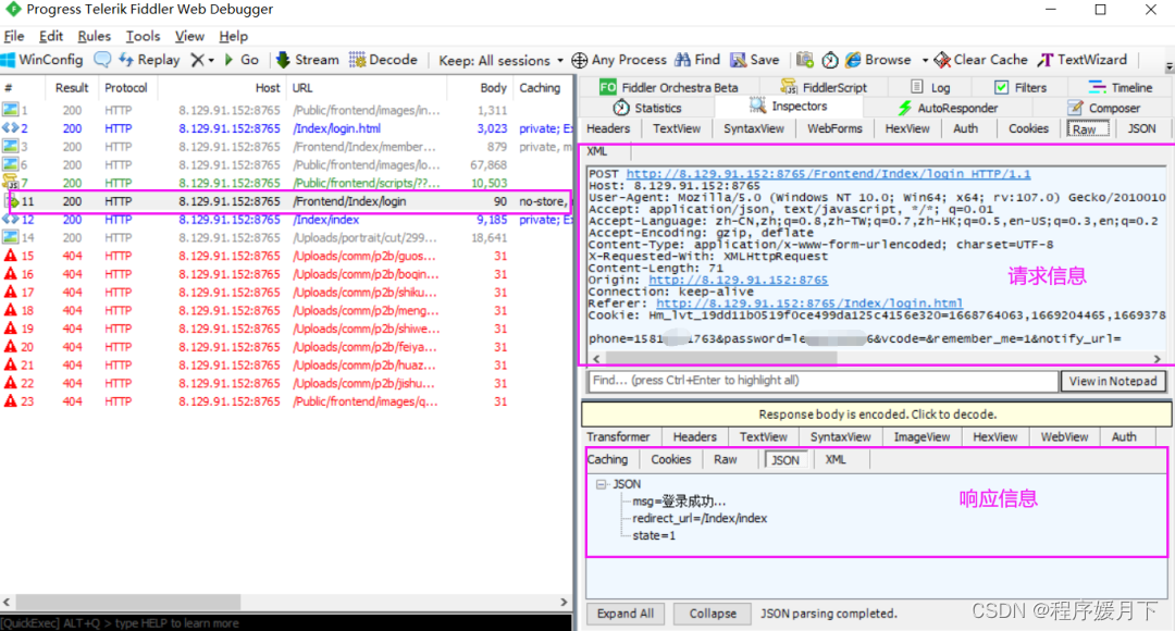 若开发未提供接口文档,则可通过抓包工具fiddler或charles去抓取接口信息进行分析,进行接口测试。
