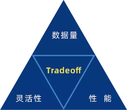 CAP 理论大家都已经比较熟悉, C.A.P 之间无法兼得,只能有所取舍。在分析系统中同样需要在三个要素间进行取舍和平衡,三要素分别是数据量、灵活性以及性能。