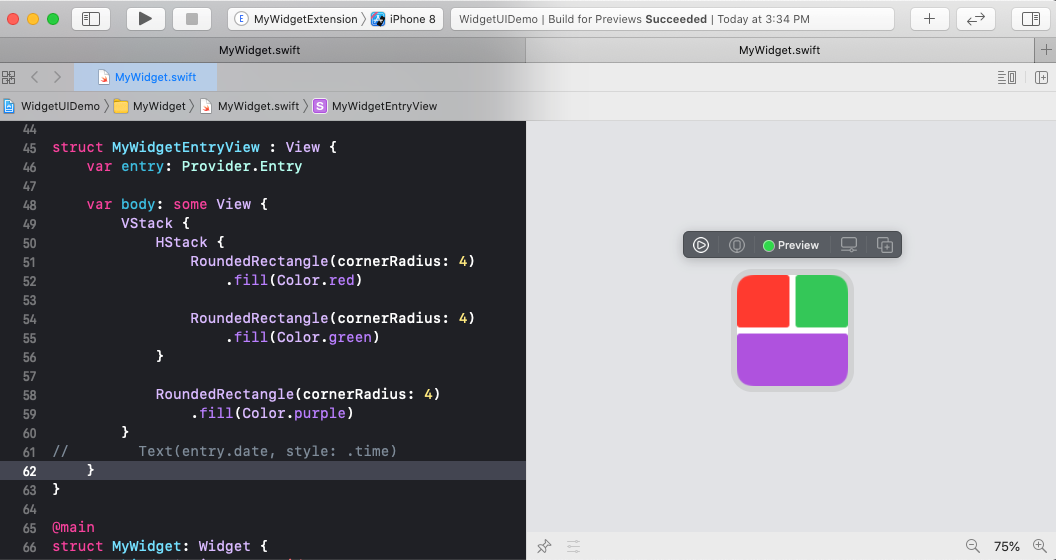 一个 iOS App 可以提供多种样式的 Widget,而苹果系统引入了SwiftUI,让我们可以一边编写代码一边预览UI,实在舒适。