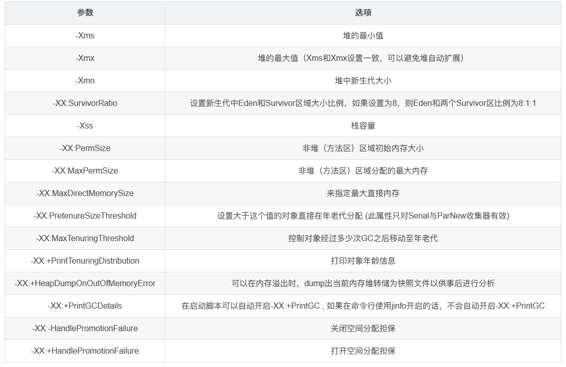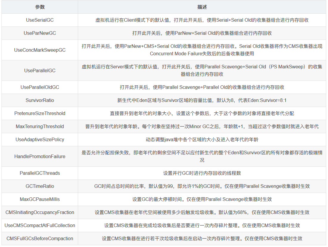 2.JVM垃圾收集器参数总结