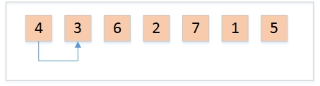 例如对4 3 6 2 7 1 5这7个数字进行从小到大的排序,从最左侧开始,首先比较4和3