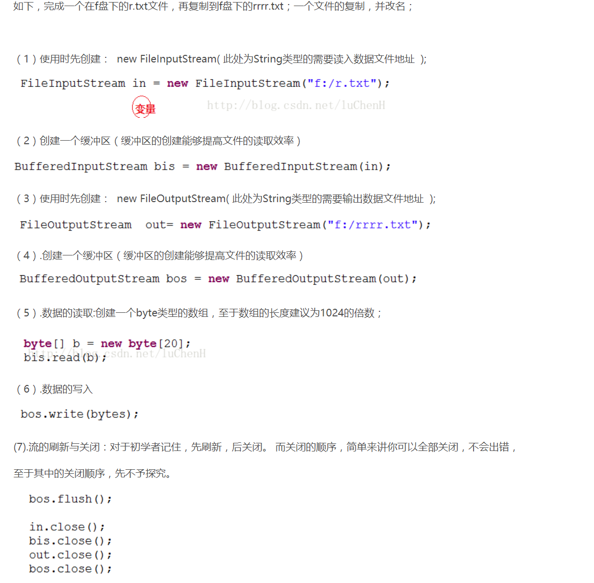 (7).流的刷新与关闭:对于初学者记住,先刷新,后关闭。 而关闭的顺序,简单来讲你可以全部关闭,不会出错,