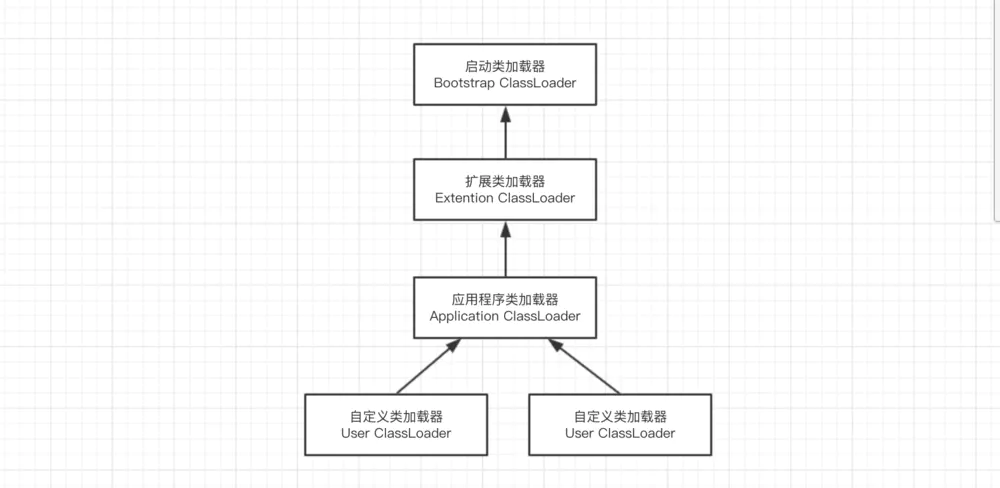 类加载器这种层次关系称为类加载器的双亲委派模型:除了顶层的启动类加载器外,其余的类加载器都应当有自己的父类加载器。这里的类加载器之间的父子关系一般不会以继承的关系实现,而是都使用组合关系来复用父加载器的代码。