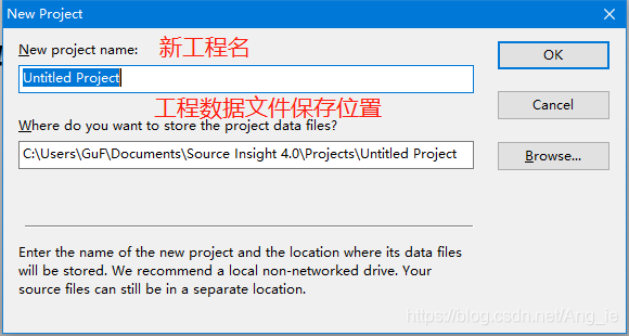 在菜单栏中点击Project > New Project ,然后会出现对话框如下,分别为当前工程名称和后期该工程数据文件的位置,工程名建议起一个比较容易识别的名称,而工程数据文件可以使用默认的位置或者用户自定义路径;