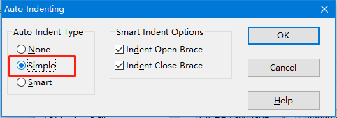 另外关于缩进,在上图中右上方有个Auto Indent按钮,点击之后,建议将Auto Indent Type选择在Simple上。