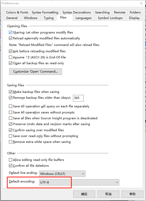 以上方式设置的编码方式是临时的,当打开下一个文件的时候仍然是乱码,此时进行全局设置,点击菜单栏Options > Preferences出现如下图对话框,设置红框中编码方式即可实现全局的编码方式。
