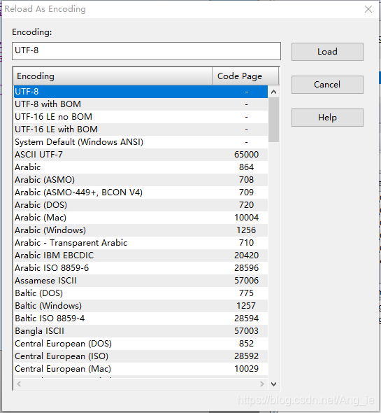 有时候代码打开后是乱码,需要手动选择文件的编码方式,点击菜单栏File > Reload As Encoding会出现如下图对话框,选择自己需要的编码即可。