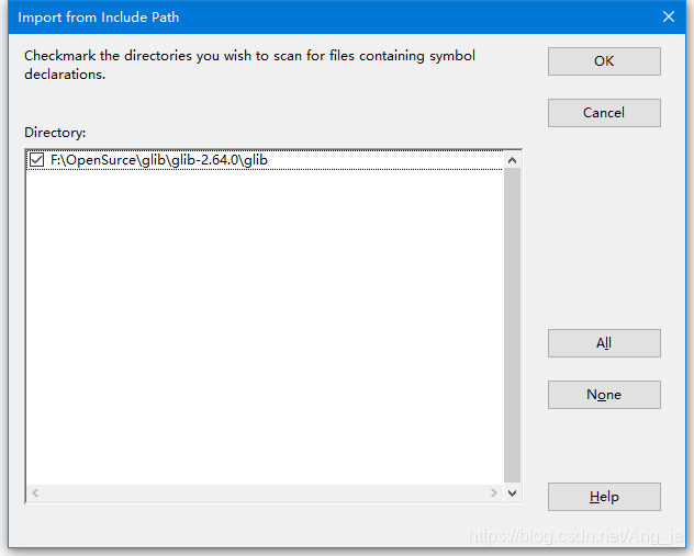再点击Import from an INCLUDE path出现如下对话框,将相关的函数定义放入编辑处,按回车确认后出现后一个对话框同时再按OK按键。然后文件会同步。上面出现还可以点击Import from a source code tree是出现文件浏览对话框的形式,与此雷同。