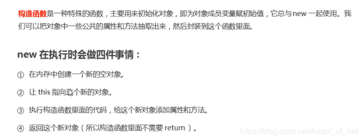 (2)constructor里面的this指向的是实例对象(new关键词创建新实例时,会调用构造函数,而构造函数本身this并没有什么意义,只有在new时才会变化,并将this指向实例)