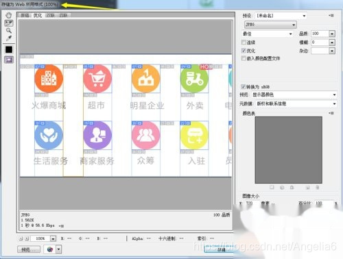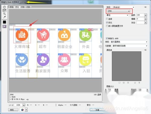 点选切图 同时按住shift 加选 ,鼠标点击10个切图 ,右上可以修改图片的格式,按存储即可完成切图(保存:选择要存储的位置后下面 的切片类型 选择“选中的切片”)