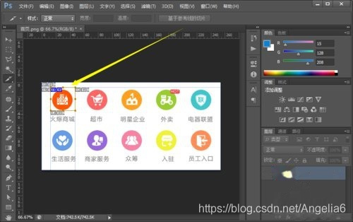 选中后开始切图,找到要切图位子,鼠标点击拖拽。如发现有偏移,可以再到左侧工具栏中选 “切片选择工具”进行调整(图片上可以有很多个切图)