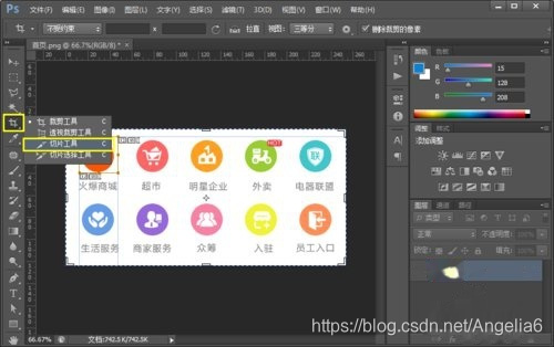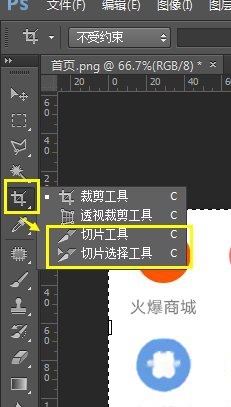 首先找到切图工具,左侧第5个工具剪切下的子工具(切图工具 和切图选择工具 ),鼠标点击就会出现(我们拿这几个图片作为例子)