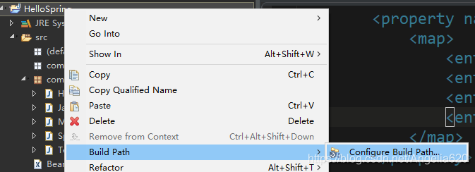 在Project Explorer面板下,点击项目,右键,点击Build Path—>Configure Build Path...