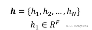 假设 Graph 包含 N 个节点,每个节点的特征向量为 hi,维度是 F,如下所示