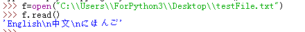 with open("C:\\Users\\ForPython3\\Desktop\\testFile.txt","a+",encoding="gbk") as f: