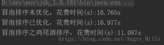 System.out.println("冒泡排序之鸡尾酒排序,花费时间(s):" + (System.currentTimeMillis() - nowTime) / 1000.0 + "s");