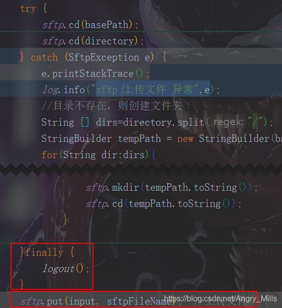 这个异常是在执行put操作出现的,看了半天,才发现put操作在 sftp.disconnect() 后执行的,代码如下: