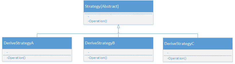 1.抽象类为策略类,抽象类的派生类为实现类,多个派生类只区别在表现行为不同,可以使用Strategy模式,在运行时动态选择具体要执行的行为。