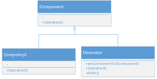 2. Decorator中的Operation包含自身的函数,同时时调用了IComponent的Operation();