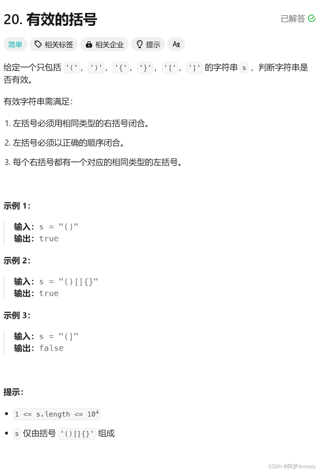 当遍历结束后如果发现栈中还有元素,那么说明左括号多于右括号,返回fasle
