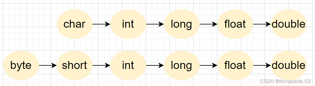 (byte、short)和char之间不会相互自动转换。
