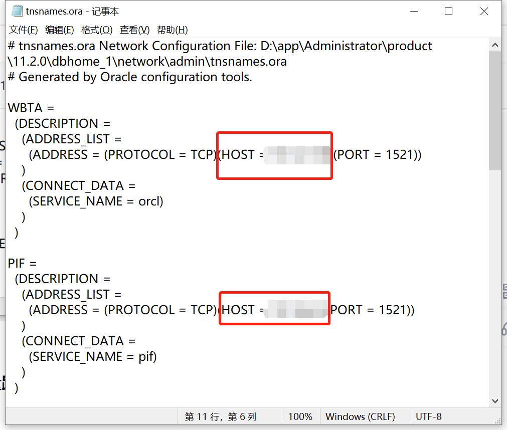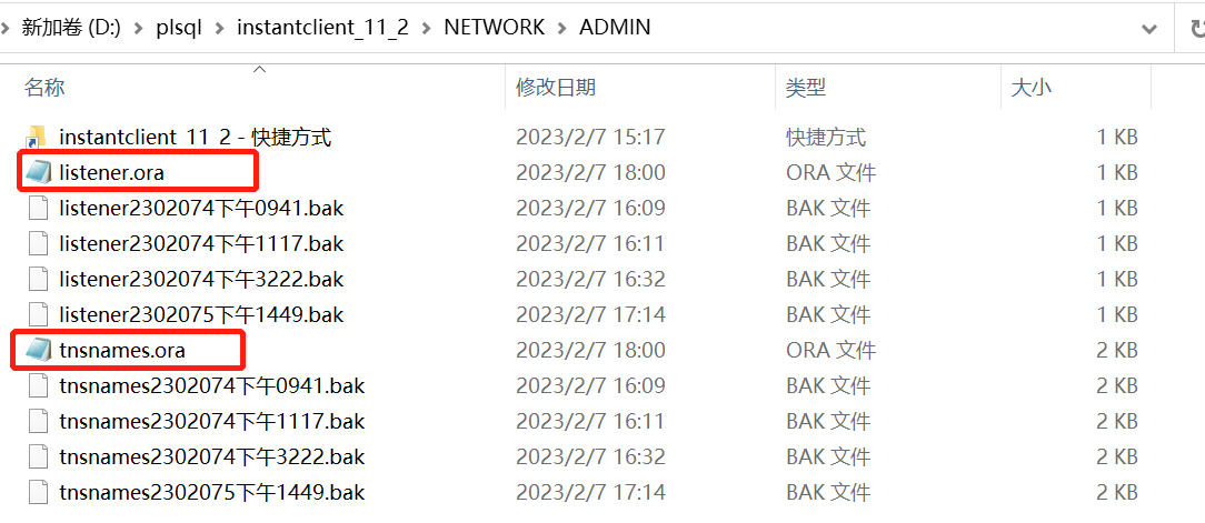 修改这两个文件,路径都大差不差,在...instantclient_11_2>NETWORK>ADMIN下