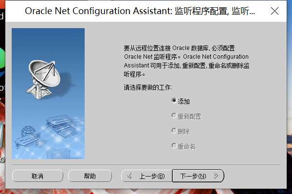 下一步,没有配置过监听程序就选‘添加’;配置过选重新配置;