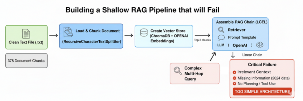 既然我们已经配置好环境,并且准备好了具有挑战性的知识库,那么接下来合乎逻辑的步骤就是构建一个标准的普通检索增强生成(RAG)管道。这具有至关重要的作用……