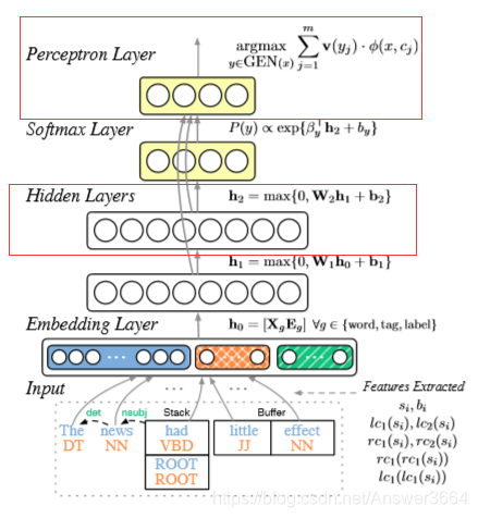 模型的总体结构如下图所示,可以发现其实是在Chen模型的基础上多添加了一个隐藏层和感知机层。 Chen模型的最后一层直接使用Softmax输出每一个操作概率,而这篇文章将Softmax输出和前面两个隐藏层的输出连接起来作为感知基层的输入。给出的解释是能利用神经网络更多的信息。