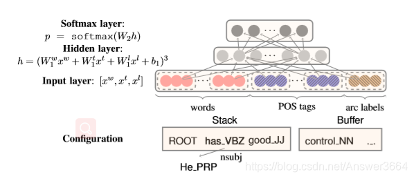 基于转移的依存句法分析方法在保证分析效率的同时也能达到满意的准确率。和人工构造特征的方法相比,陈丹琪等人(Chen)使用神经网络和贪心算法构造了基于转移的依存句法解析器。其效果虽优于人工方法但仍没有达到state-of-the-art。因此本论文对Chen提出的模型进行了一些改进,在模型的输出部分添加了感知机层,同时使用大量的无监督数据,结果取得了最高的准确率。