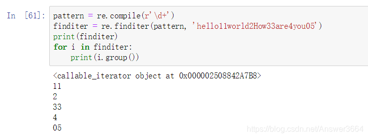 finditer = re.finditer(pattern, 'hello11world2How33are4you05')