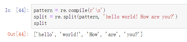 split = re.split(pattern, 'hello world! How are you?')