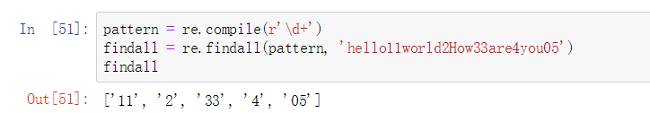findall = re.findall(pattern, 'hello11world2How33are4you05')