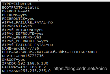 修改 ifcfg-eno16777736 刚安装的机器没有vim 我们可以使用vi