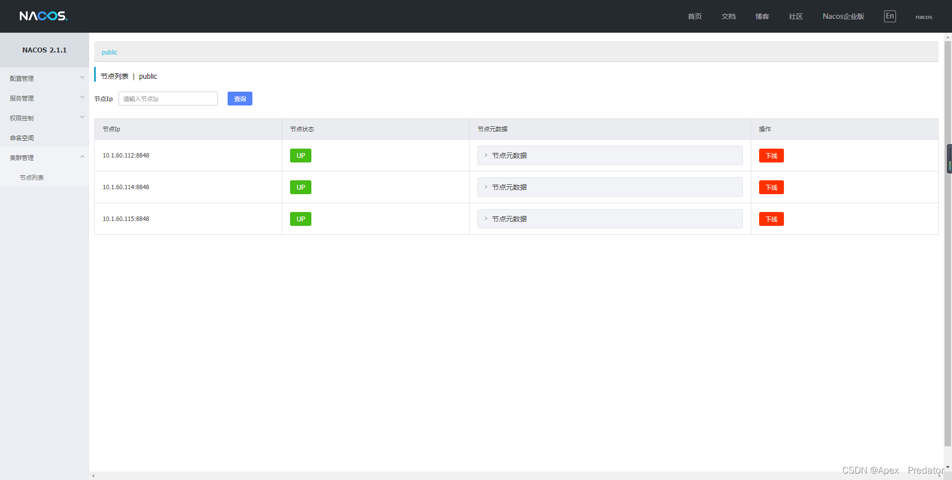 | A | 10.1.60.112 | 8848、3360 | nacos、mysql |