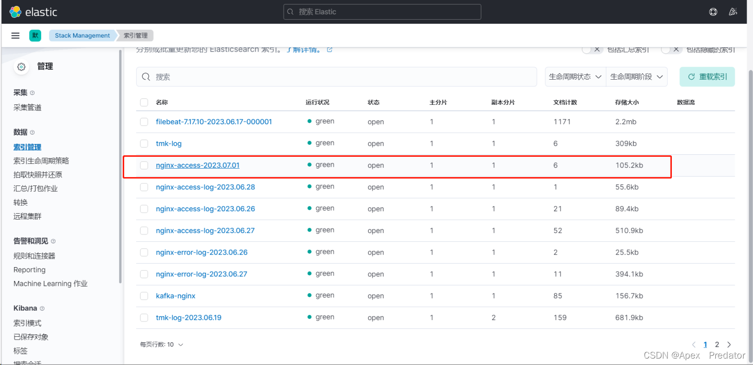 可以看到nginx生成访问日志后,elasticsearch 也自动创建了符合配置规则的索引,并将日志写入,查看一下日志数据