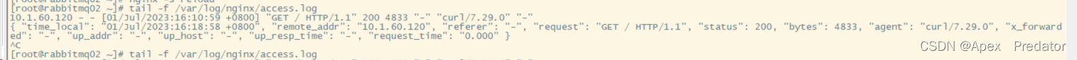 先更改nginx的配置文件,随便往里面写入一些字母,再优雅重载nginx配置文件,因为配置文件有问题,重载nginx配置会生成错误日志
