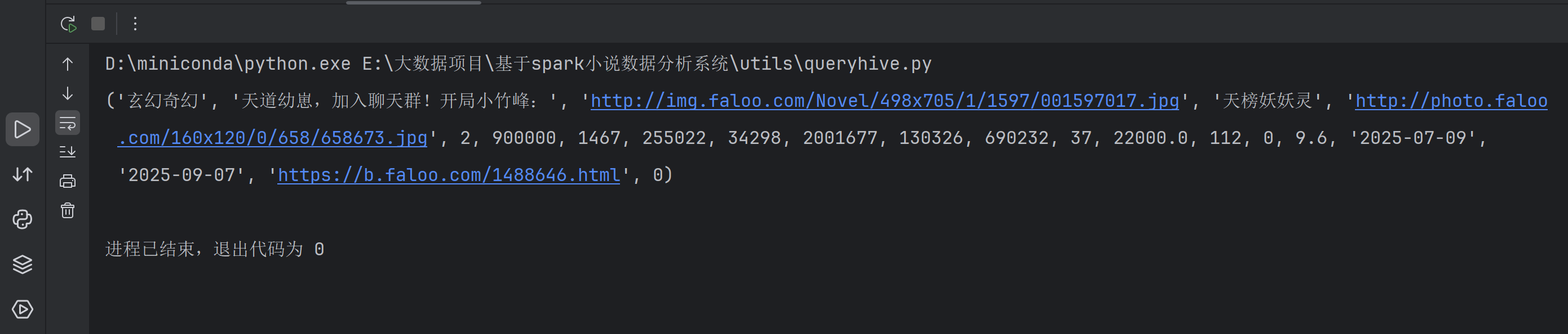 可以看到已经能在SparkThriftServer中查到表了,最终返回我们的pycharm再次运行,可以看到我已经能够成功查询到了数据