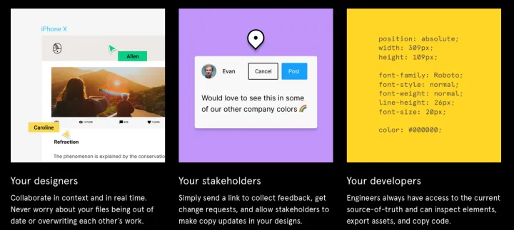 Figma可实时查看设计稿的变动情况,甲方可以很方便的预览与提出反馈意见;开发可以查看获取组件与代码