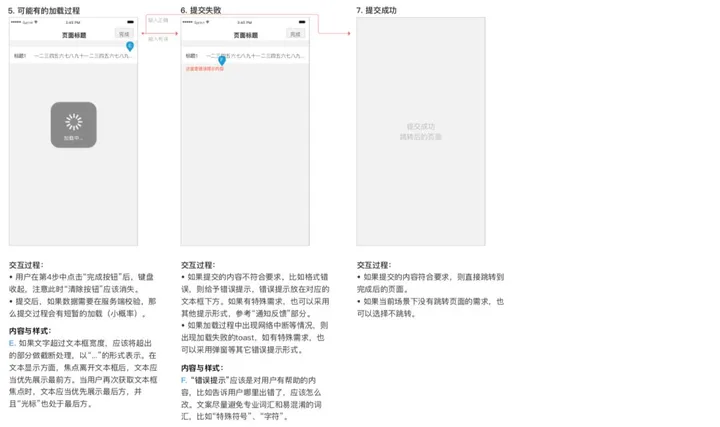 很多控件都不是静态的,都会有各自的一套交互流程,比如文本框(可参考下图流程):“用户点击文本框后,会出现光标,且弹出键盘。输入第一个字符后,会出现“清空按钮”。输入很多字符后,会有截断效果。输入错误时,会报错…”